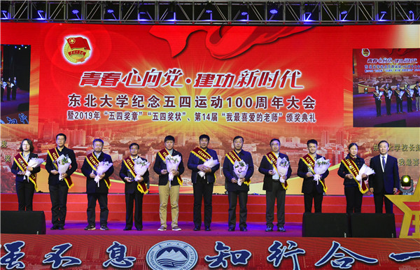 4月29日晚,“青春心向党·建功新时代”东北大学纪念五四运动100周年大会暨“璀璨星光”东大青年奋斗的青春故事会(第五季)在南湖校区刘长春体育馆举行。大会表彰了2019年全校获得“五四奖章”的50名优秀个人和获得“五四奖状”的68个先进集体,并为第14届“我最喜爱的老师”获奖者颁奖。东北大学党委书记熊晓梅,校长赵继,中国工程院院士王国栋,党委副书记、纪委书记杨明,党委副书记张国臣,党委常委、副校长孙雷,党委常委、副校长徐峰,党委常委、组织部部长王辉出席大会。学校各有关部门负责人、各学院党委书记、副书记、学生工作的负责老师以及2700余名师生共同参加了纪念活动。