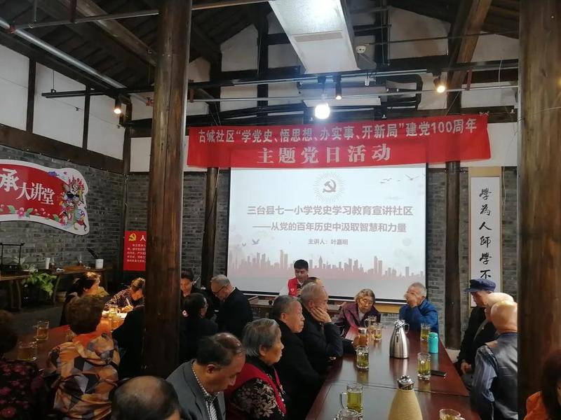 2021年4月25日,为庆祝中国共产党成立100周年,深入学习贯彻习近平新时代中国特色社会主义思想,推进党史学习教育进社区,传承红色精神,东北大学“学习报国”青年宣讲团、东北大学研究生支教团四川队联合三台县七一小学、古城社区开展“学党史、悟思想、办实事、开新局”建党100周年主题党日活动。此次宣讲活动也是东北大学“百”年“百”讲的第四十次宣讲活动。