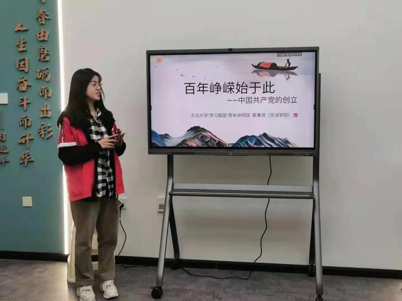 2021年5月8日上午11:00,东北大学“学习报国”青年宣讲团成员蔡秉淑走进文法学院事业1902团支部,在三舍A110开展了理论宣讲活动。