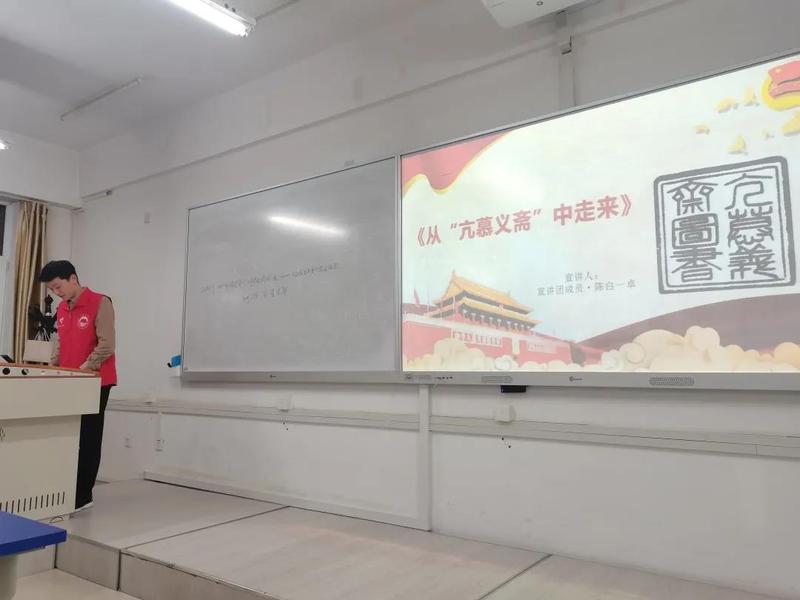 聆听了今天的宣讲,我初次了解了亢慕义斋,此时才惊觉自俄国十月革命为我们送来马克思主义后,先辈们从未停止对它的探索与研究,试图从中找出救亡图存的道路。中国共产党才能救中国绝不是无的放矢,单先辈们满腔爱国热情与昂扬斗志就足以令人动容,更不必说将伟大的马克思主义作为指导思想与理论依据,使斗争更有理有力。此次宣讲再次坚定了我继承先辈遗志,矢志报国的决心。