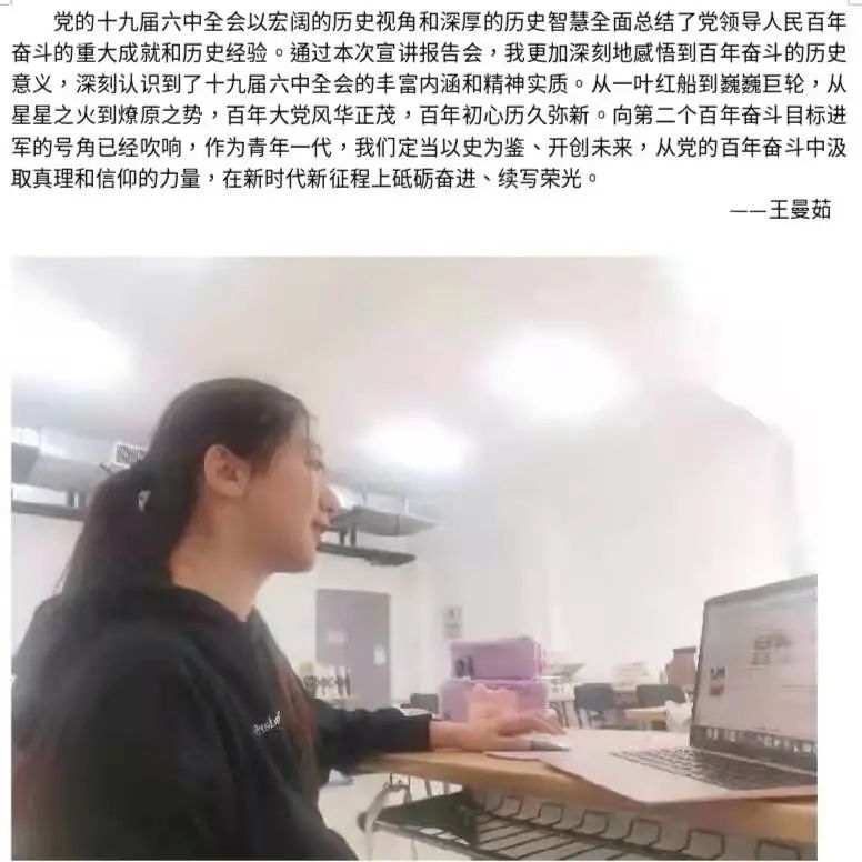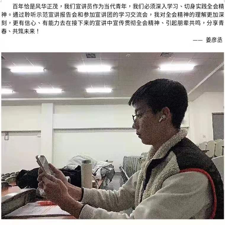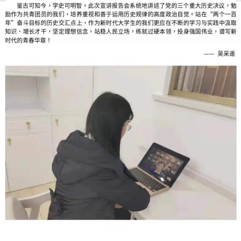 为进一步学习贯彻党的十九届六中全会精神,认真落实《辽宁共青团学习宣传贯彻党的十九届六中全会精神工作方案》相关要求,校团委于12月通过组织专题宣讲报告会、学习交流会等形式,宣传贯彻党的十九届六中全会精神。