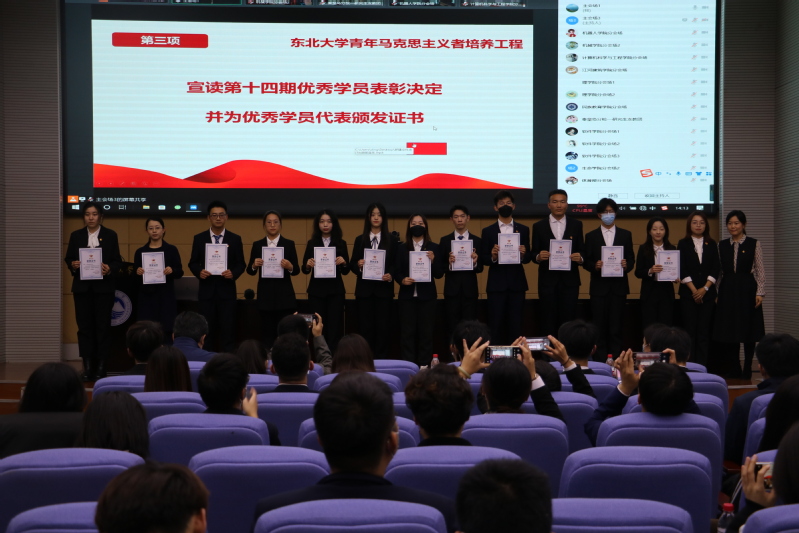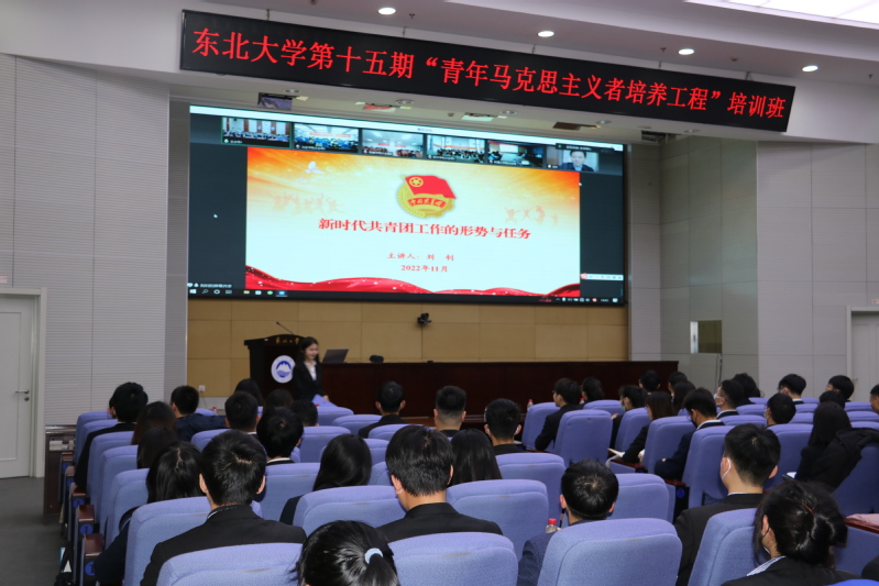 11月9日,东北大学第十五期“青年马克思主义者培养工程”培训班开班仪式暨理论学习第一讲在主楼822室举行。校、院两级团委相关同志出席开班仪式。开班仪式以线上线下相结合方式举行,本期培训班指导教师和“十、百、千”三个层次2500余名青马学员在主会场和各分会场参加活动。