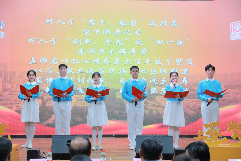 表彰大会上,还举行了2023年第十八届“我最喜爱的老师”评选活动启动仪式,6名学生代表现场表演了诗朗诵《感怀师恩·百年传承——老师,我想对您说》,表达广大同学对老师的敬爱之情,与会嘉宾共同启动了“我最喜爱的老师”评选活动。