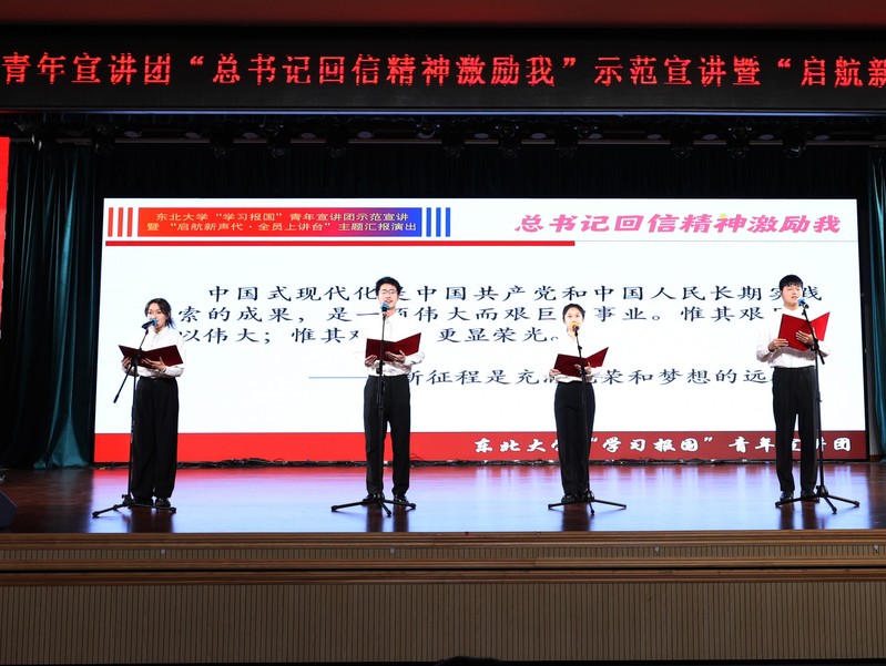 12月7日,东北大学“学习报国”青年宣讲团“总书记回信精神激励我”示范宣讲暨 “启航新声代·全员上讲台”主题汇报演出在南湖校区学生活动中心举行。副校长王辉出席活动,校院两级专职团干部、2024级本科生代表参会。