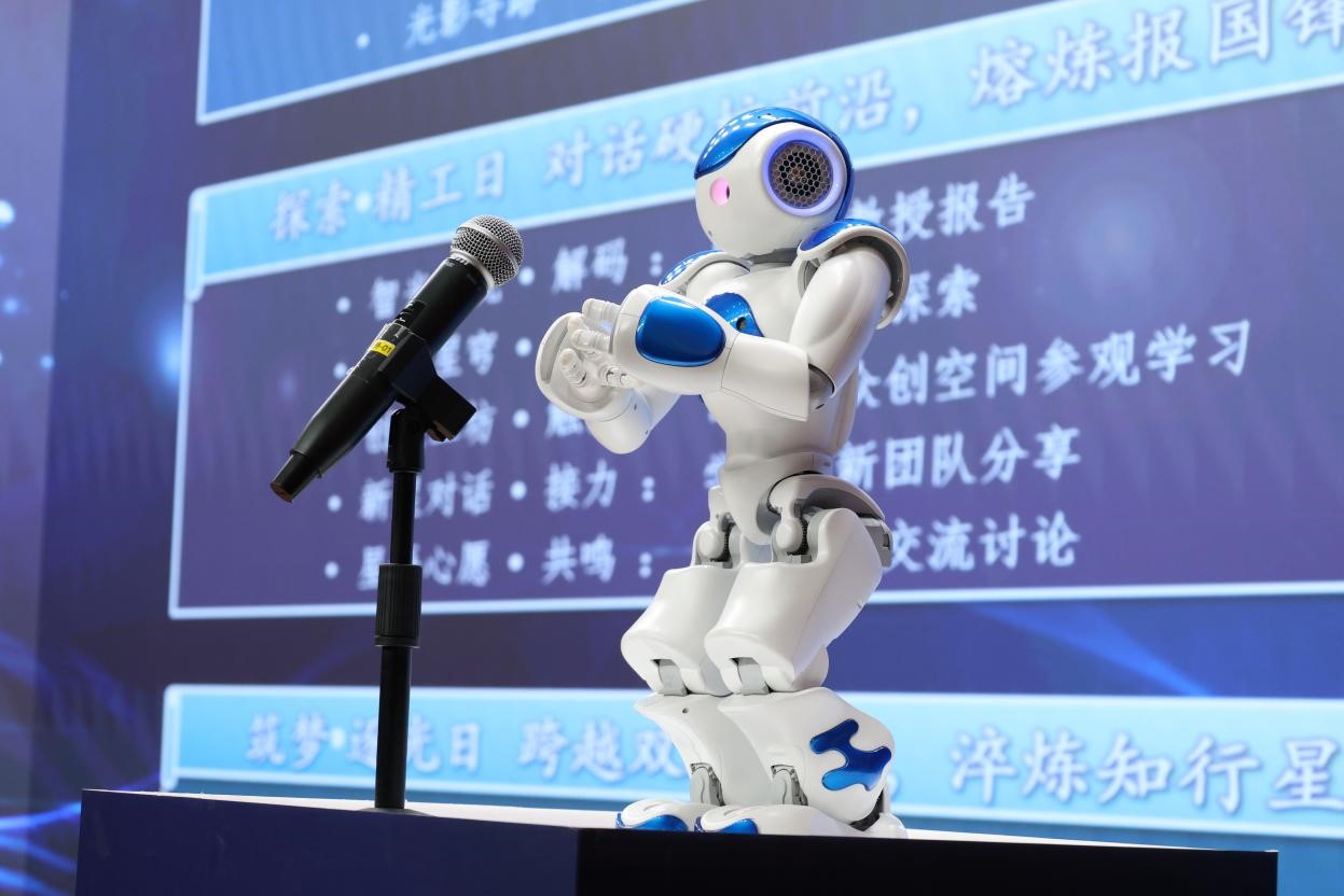机器人学院人机协作实验室的机器人“小智”作为本次科学营活动的科技志愿者,介绍了2025年辽宁省青少年高校科学营东北大学分营活动方案。