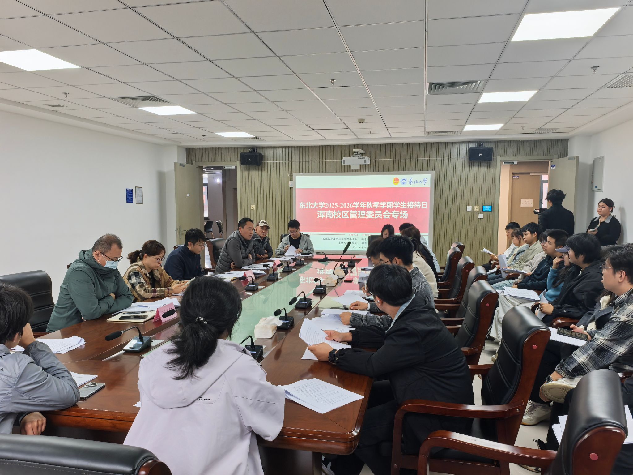 近日,东北大学2025—2026学年秋季学期学生接待日浑南校区管理委员会专场活动在浑南校区学生活动中心215室举行。校团委、浑南管委会相关业务负责同志和来自各学院的学生代表参加座谈会。