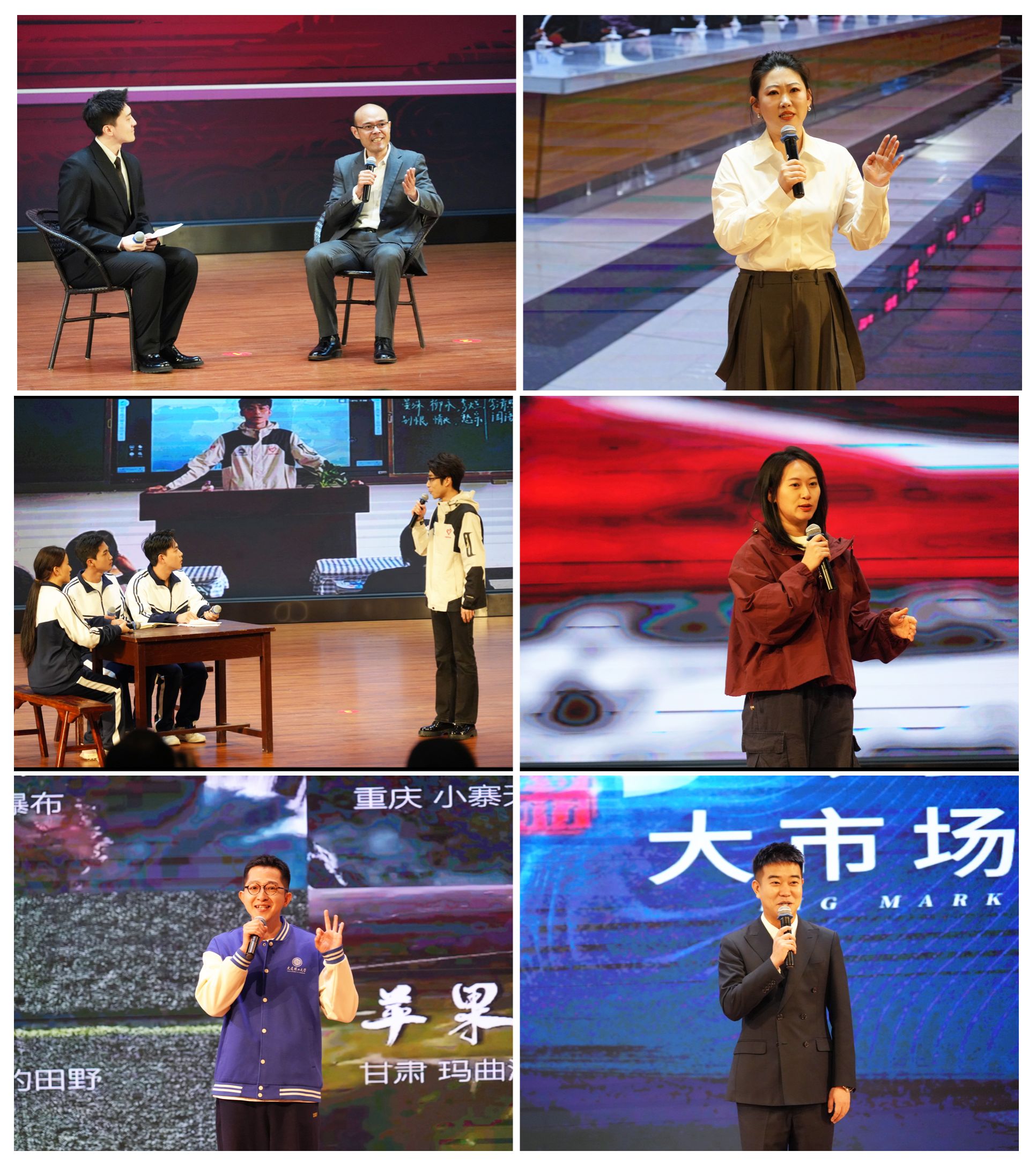 首场宣讲会上,“青年先锋”宣讲团成员杨大越以《争做新时代青年马克思主义者》为题作“访谈式”宣讲;“基层名嘴”宣讲团成员沈珞宜以《不墨迹、不折腾:厚培营商环境“沃土”》为题作“脱口秀式”宣讲;“硕博知行”宣讲团成员冯文相以《以茶山为笺——一张跨越3748公里的青春答卷》为题作“情景式”宣讲;“青年先锋”宣讲团成员孙明慧以《在一起》为题讲述东北抗联红色故事;“硕博知行”宣讲团成员曹宇博以《写在中国大地上的绿色诗行》为题作“AI对话互动式”宣讲;“基层名嘴”宣讲团成员臧浩添以《小瓶盖撬动大市场》为题作讲故事式宣讲。