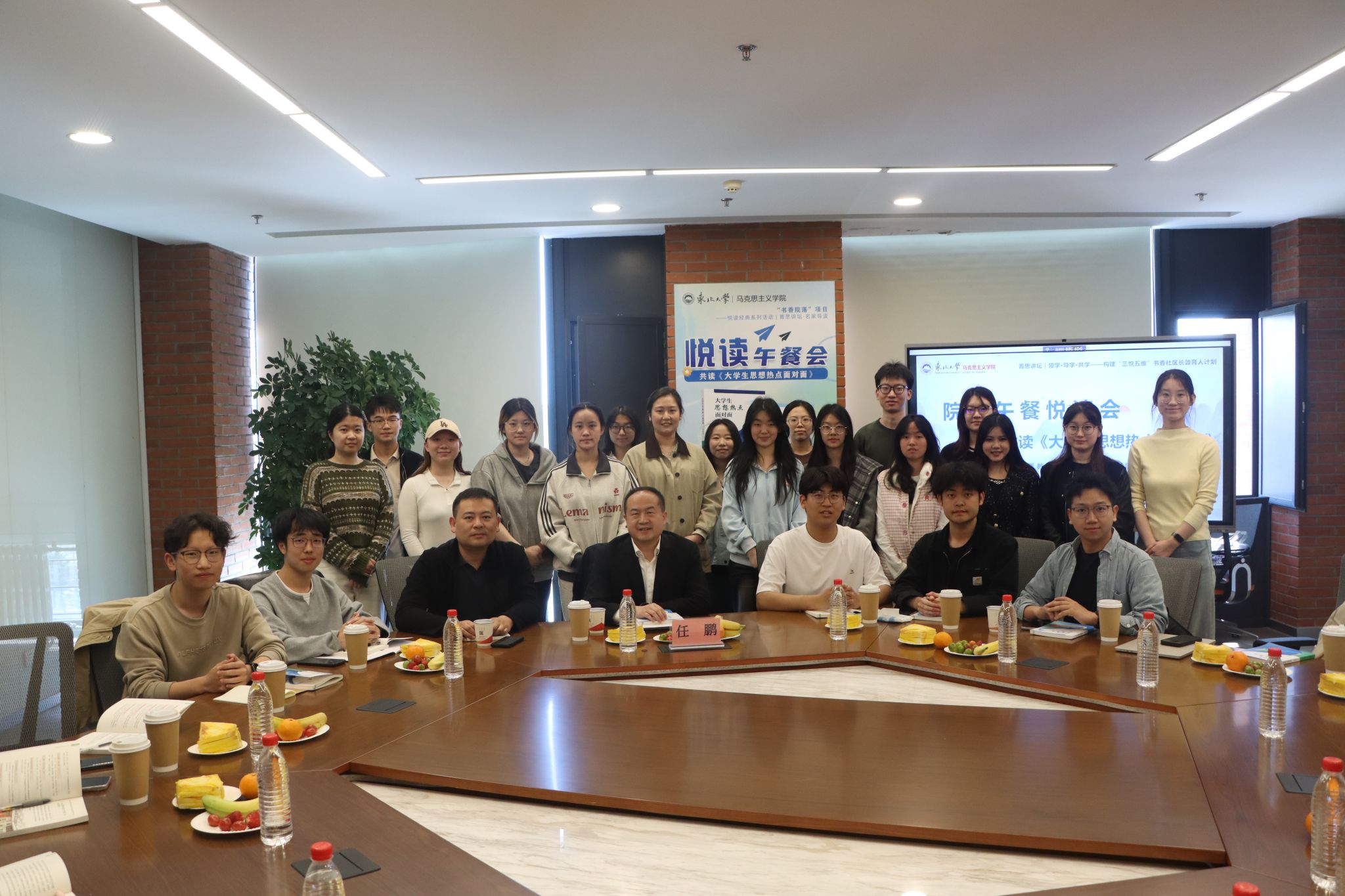 4月23日中午,马克思主义学院悦读经典系列活动之“菁思讲坛·悦读午餐会”在浑南校区图书馆研修室B508室举行。活动深入贯彻习近平总书记关于“推动全民阅读,建设书香社会”的重要指示精神,扎实推进东北大学书香院落精品项目之“悦读经典”系列品牌活动。学院院长任鹏,学院党委副书记、副院长(兼)王寰出席本次活动。